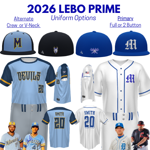 - Uniform Package of Primary Jersey, Alternate Jersey (8U thru 13U ONLY), Hat(s) and practice shirt is INCLUDED in the registration fee for each player. *Players should have/purchase separately (NEW for 2026):
